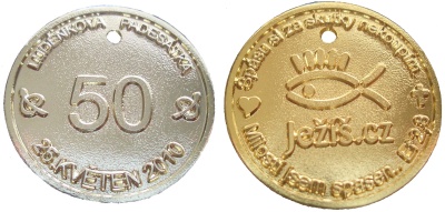 Mince, kter pipomn, e 50x NE, nelze evangelium it z vlastnch sil.. Mince, jej mal drka z lcn strany hovo o tom, e je nutno se dostat na druhou stranu, kde se spsa nekupuje za skutky, ale ije se vrou z milosti.. Mal drka hovoc o zk cest narozen z Boho Ducha.